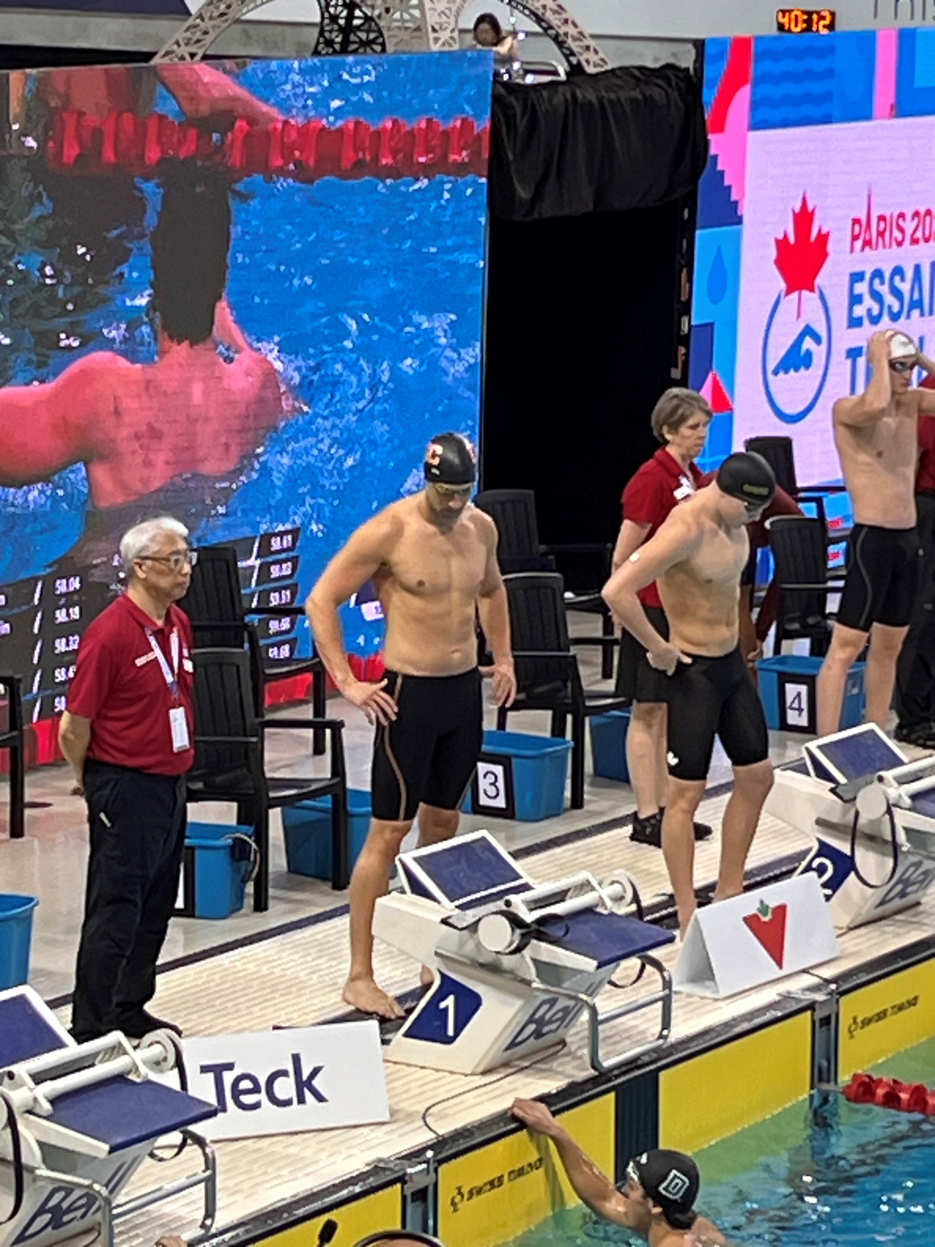 The 2024 Canadian Olympic Trials took place from May 13 th through 19 th and DSC had 6 swimmers representing the club at the competition. Three of those swimmers were familiar faces to most of the members of our club, Brandon Adams, Emma Bassermann, and Maya Holt. The other competitors were Ella Cosgrove, her brother Colin Cosgrove, and our very own Coach Chucks daughter Tori Meklensek.